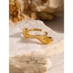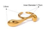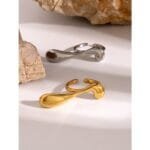 Anillo abierto con forma ondeada de acero inoxidable chapado en oro de 18k.