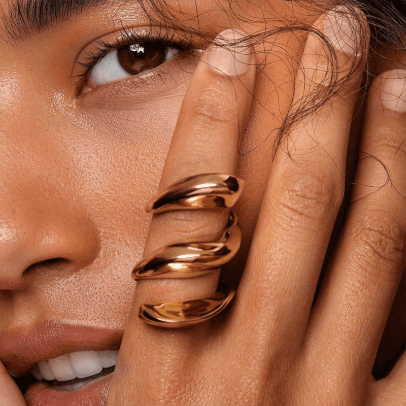 Anillo en forma de espiral de acero inoxidable chapado en oro de 18k.