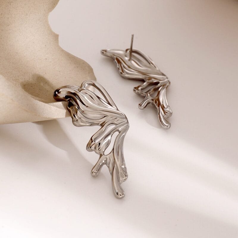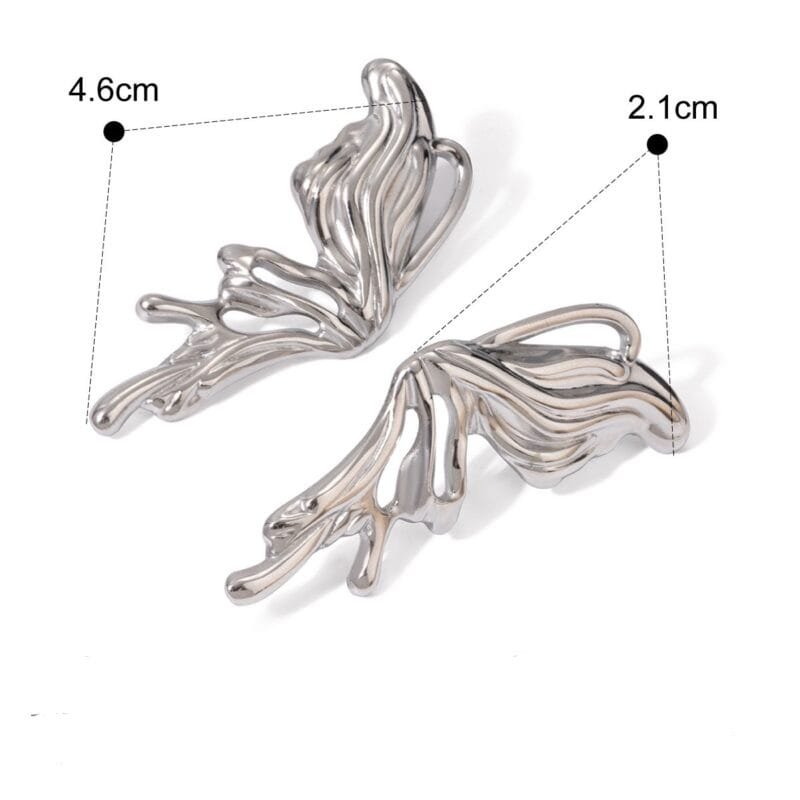 Aretes en forma de alas mariposa de acero inoxidable chapado en oro plateado.