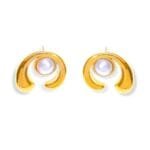 Aretes Giuliana con perla de acero inoxidable chapado en oro de 18k.