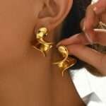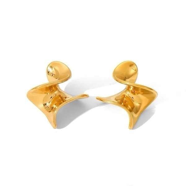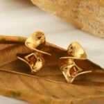 Aretes en forma de petalo de acero inoxidable chapado en oro de 18k