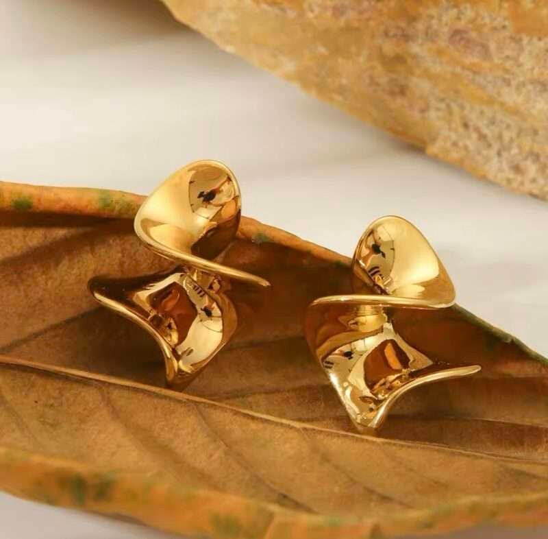 Si buscas un accesorio elegante y sofisticado, estos aretes de pétalo son la opción perfecta. El diseño minimalista y el acabado en oro de 18k los hacen ideales para cualquier estilo.