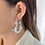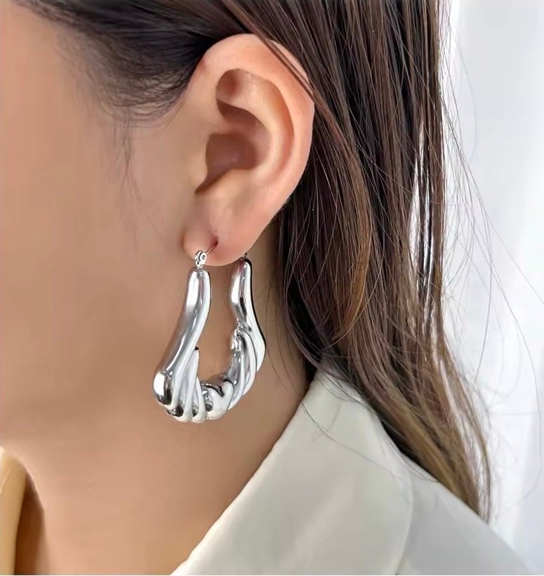 Argollas grandes de acero inoxidable con chapado plateado