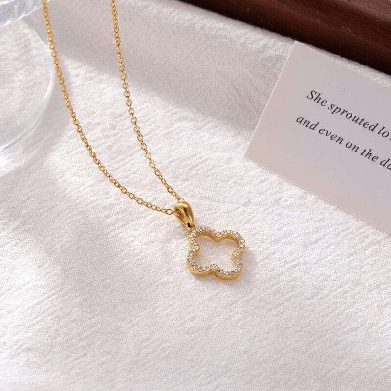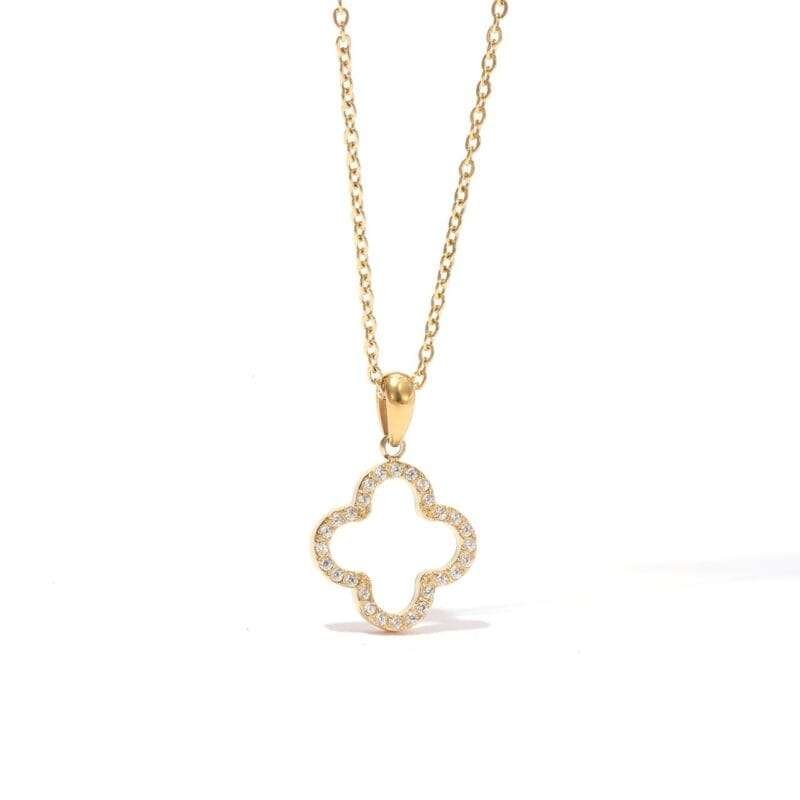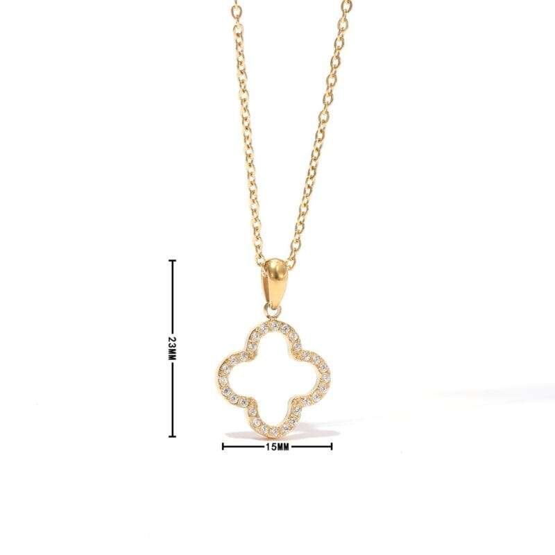 Collar con forma de trebol de cuatro hojas con circonias en acero inoxidable chapado en oro de 18k.