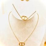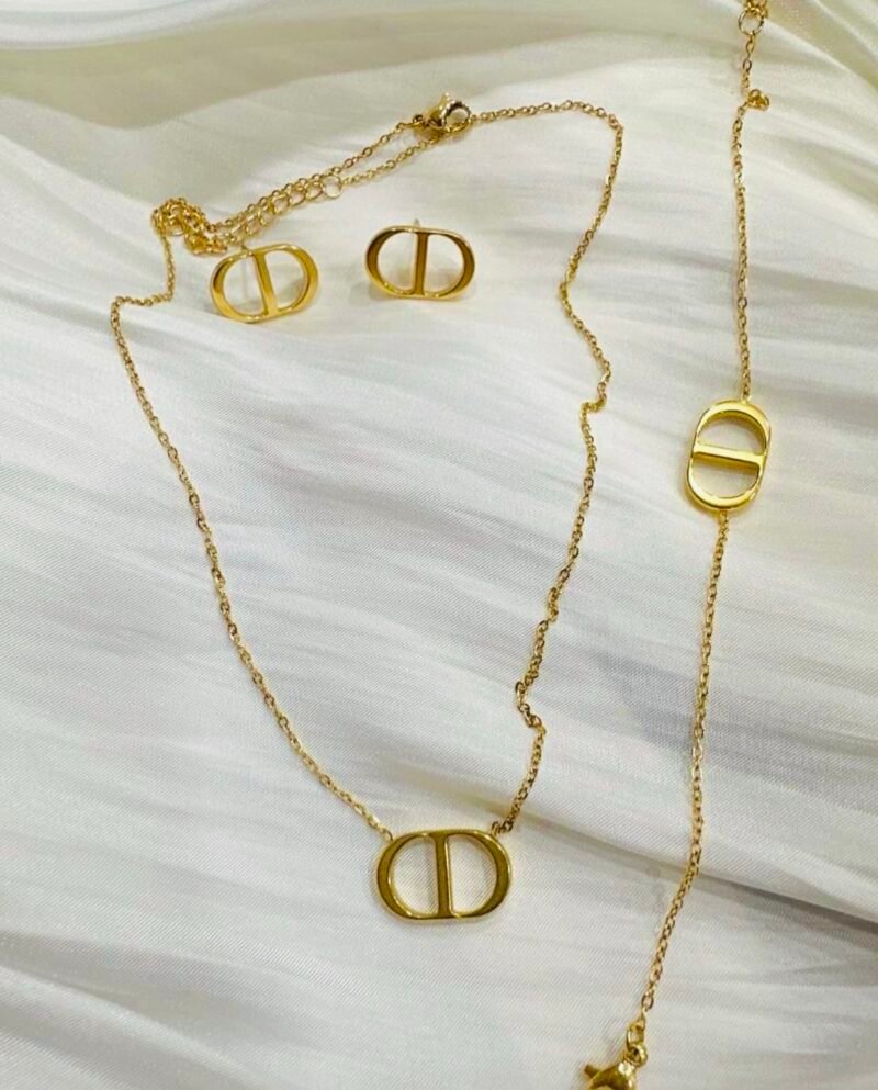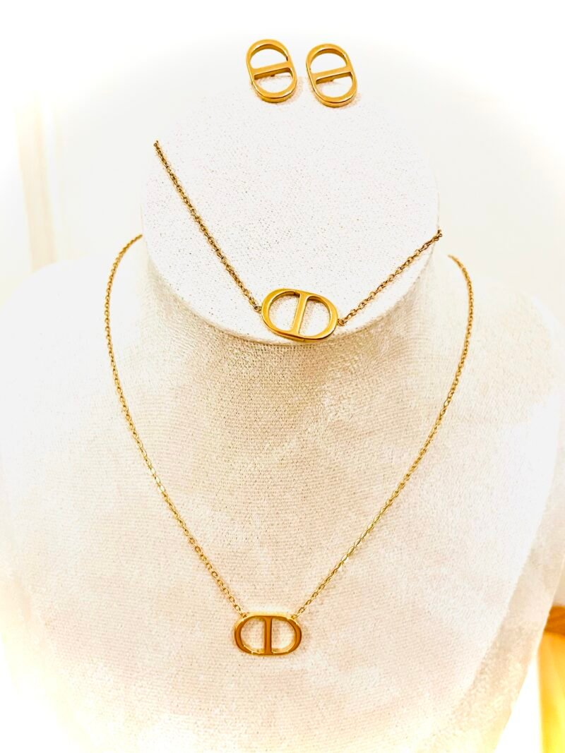 Juego de cadena, pulsera y aretes en forma de nariz de cerdo de acero inoxidable chapado en oro de 18k.