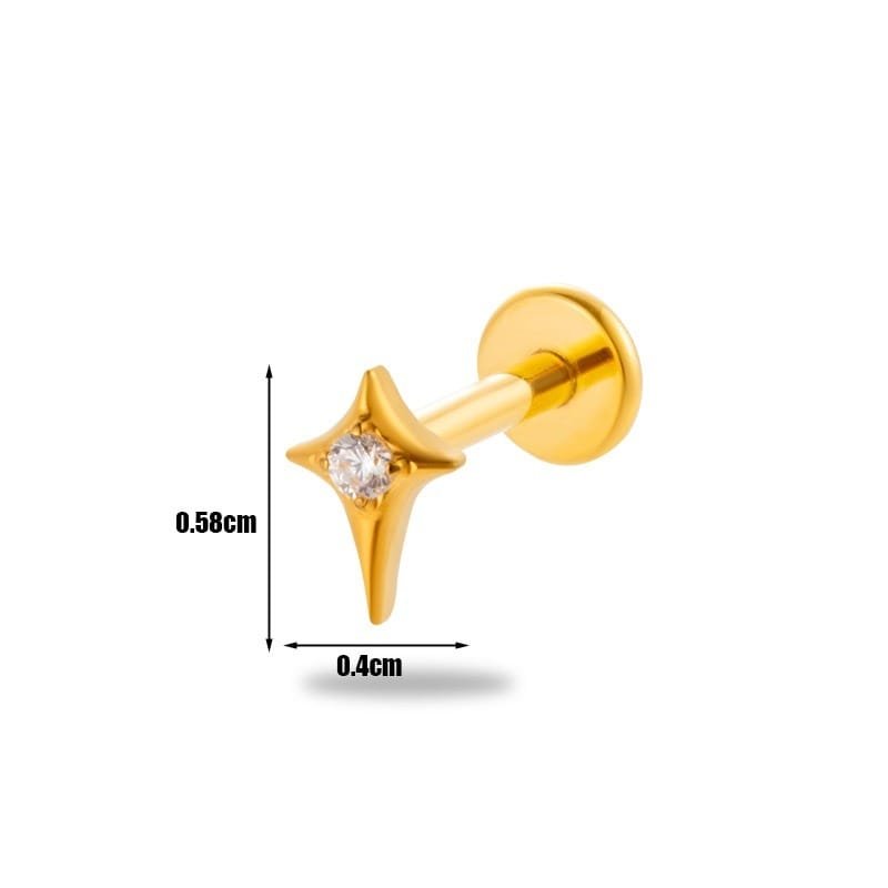 Este piercing en forma de estrella, elaborado en acero de titanio G23 – ASTM F136, es la elección perfecta para quienes buscan un accesorio duradero y con estilo.