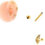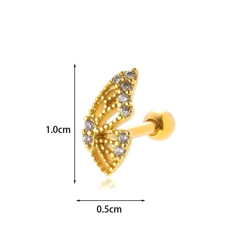 Piercing en forma de mariposa con detalles de zirconias de acero inoxidable chapado en oro de 18k.